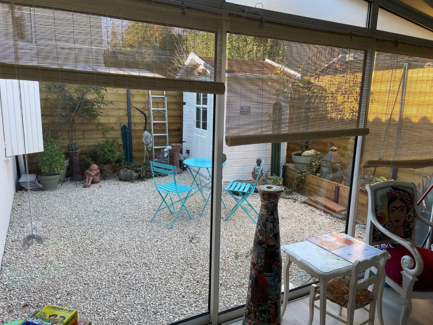 - Une pièce arrière côté nord « bureau » baies vitrées donnant sur petit jardin avec acuzzi gonflable 4 personnes